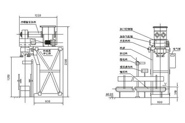 飼料包裝機(豆粕包裝機)主要由自動定量包裝機(由儲料斗、喂料器,稱重夾袋斗,揉實機構(gòu),電腦控制,氣動執(zhí)行部分等構(gòu)成)與選配部分(輸送機、縫口機/熱合機)組成。